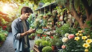 Utente: Scatta una foto del giardino e seleziona una pianta da posizionare.